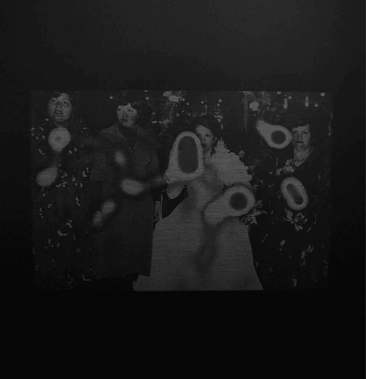 The work begins with an old family photograph of four women from my lineage: my mother, my grandmother, and other female relatives. Onto this image I applied eye tracking software that recorded the movement of my gaze over time, marking the areas on which my eyes lingered the longest. The resulting image reveals figures veiled by stains, leaving the viewer unable to clearly perceive what was, paradoxically, most important to me.