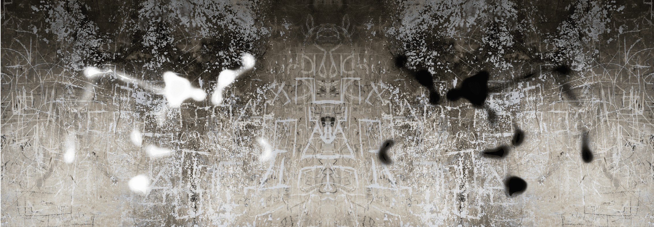 In this work I construct a space in which two registers of vision confront one another—or more precisely, coexist side by side on the same visual plane. On the right, the mapping of the gaze appears as heavy, dark, almost violent stains. On the left, the very same mapping radiates with brightness and a sense of hope. Behind them lies a charged, inscribed wall bearing traces of bodies, writings, and the lived presence of passersby and transient dwellers who once inhabited the abandoned structure.