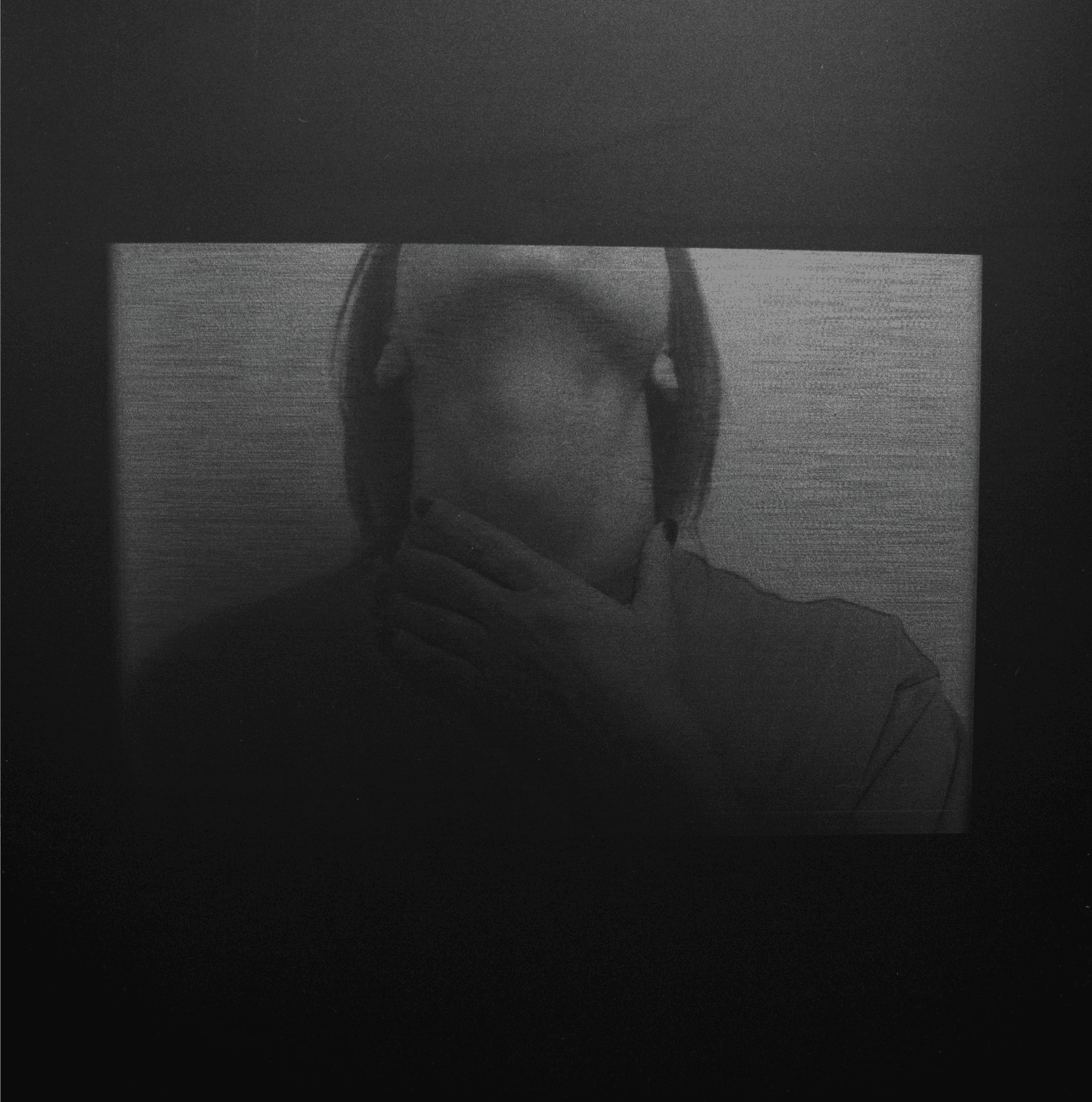 The female body is exposed, yet does not expose. The neck stretches upward, the head is cropped, and the hand either touches or seeks to shield—a quiet gesture of one who is seen but does not see. It hovers between suffocation and intimacy, between a personal moment and an act of self-protection. The image has been duplicated and altered in quality, introducing another layer of mediation. What remains is a trace, perhaps already a memory, an echo of a body.