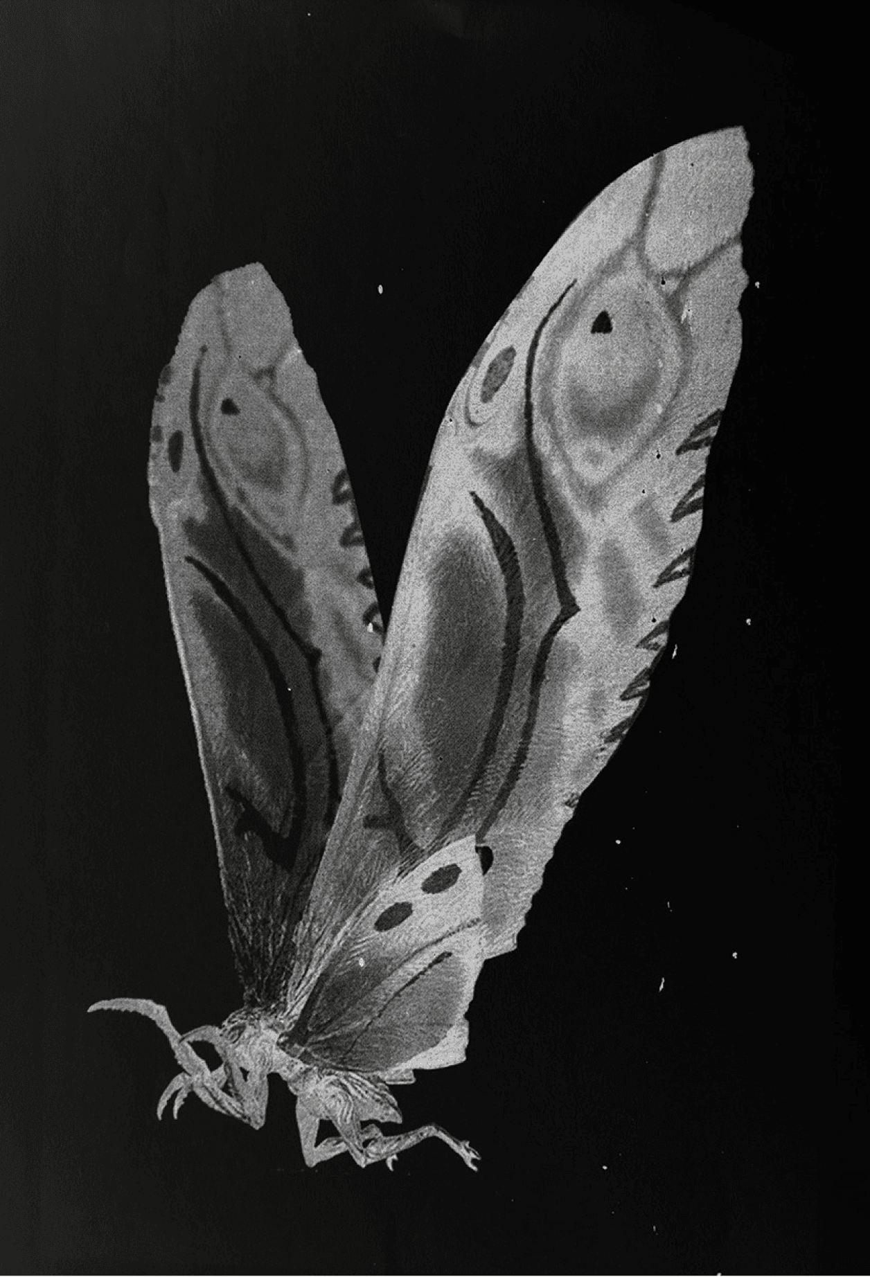 In Pinned-Memory I reflect on Mothra—the Mother of All Monsters—as a being born of boundless imagination yet here caught in a state of continuous suspension. The laser print on black zinc recalls the practice of pinning butterflies in collections, but for me it is less about preservation than about an in-between state: a frozen becoming, time arrested yet persisting.